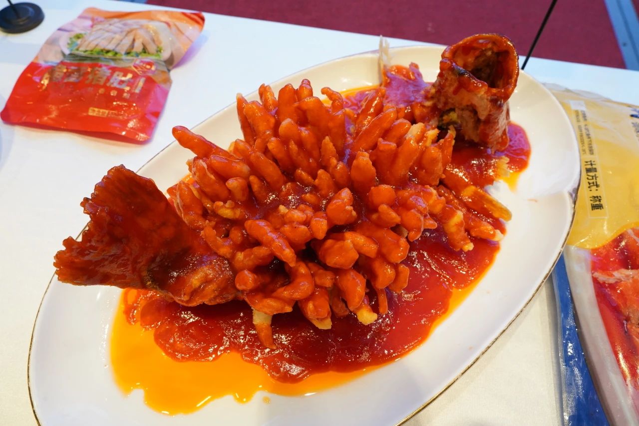 此次菜品展示台,除口口可珍珠藕丸、小龙鱼罗氏沼虾等经典产品外,国联汉虾传奇、小龙鱼松鼠金桂鱼、东海扁蟹、口口可芝麻藕条等24年新品凭借优质的食材源头,鲜嫩、大气的外形及菜式做法收获了一众专业客户的肯定与意向订单!