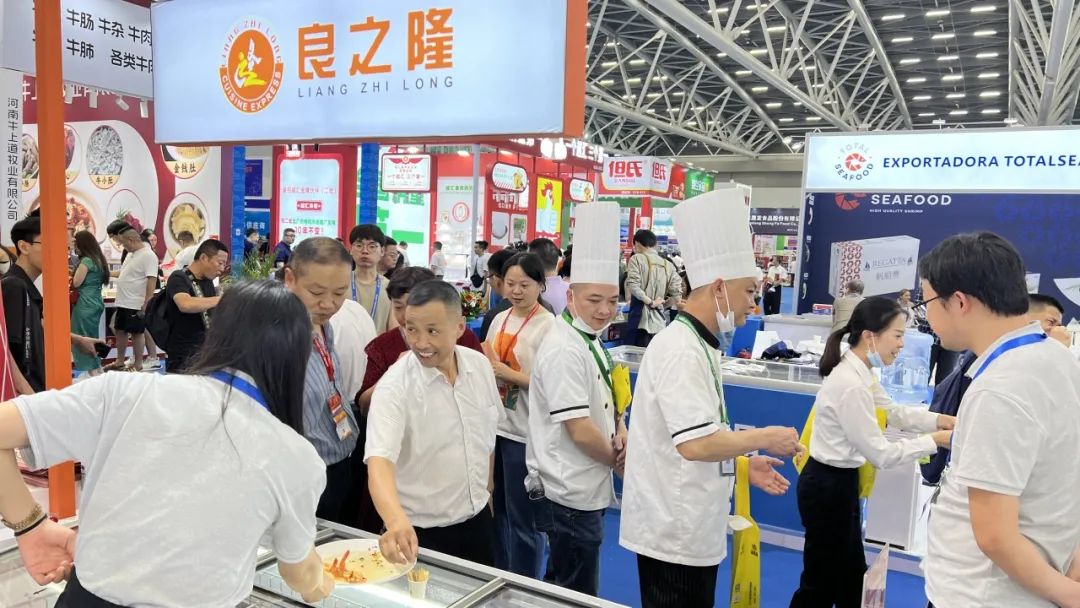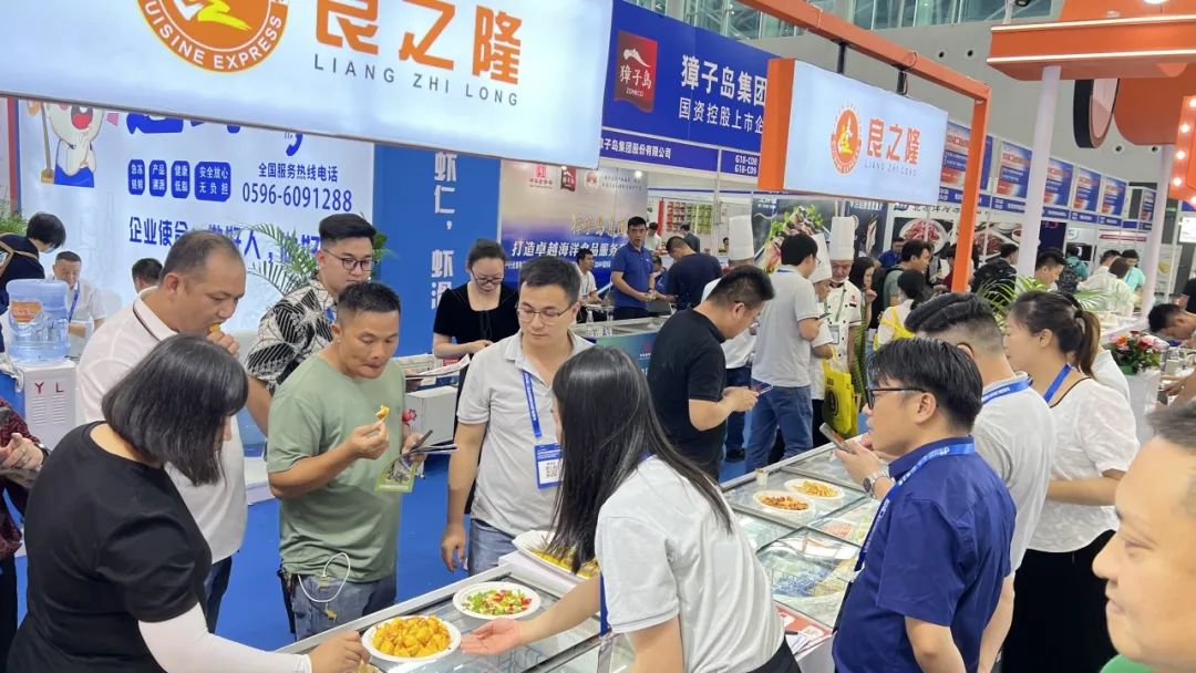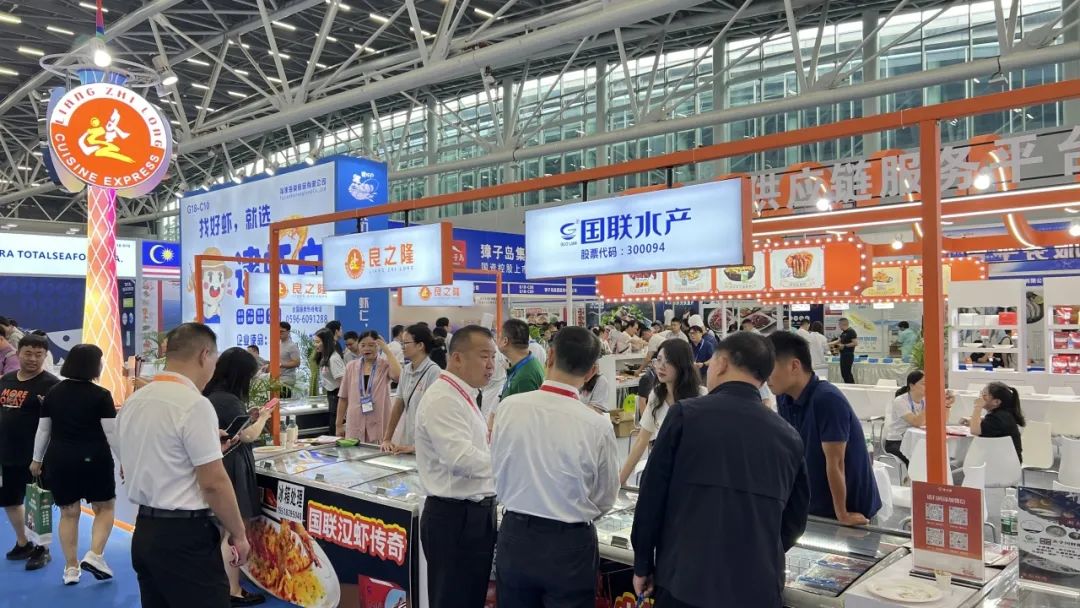 丰富的产品种类,水产、面点、虾贝、蔬果、肉禽.....吸引了众多来自全国各地的经销商和餐饮客户的目光。其中,国联汉虾传奇、沣运鲍鱼、小龙鱼松鼠金桂鱼、东海扁蟹、小龙鱼黑虎虾滑、口口可芝麻藕条等成了当之无愧的明星产品。